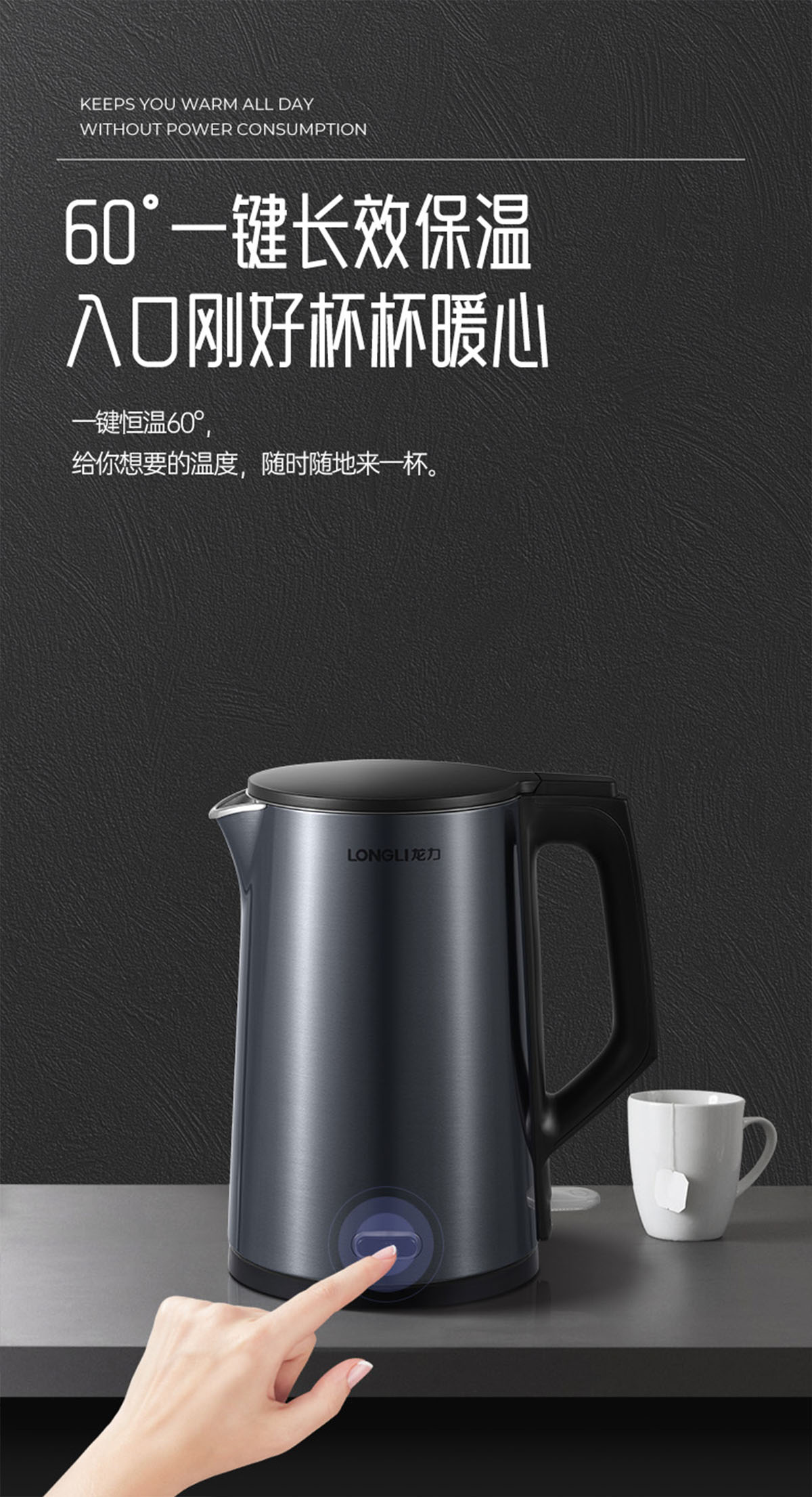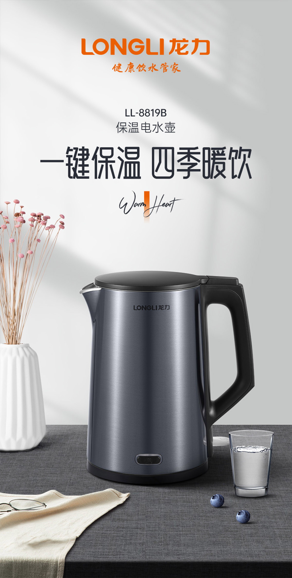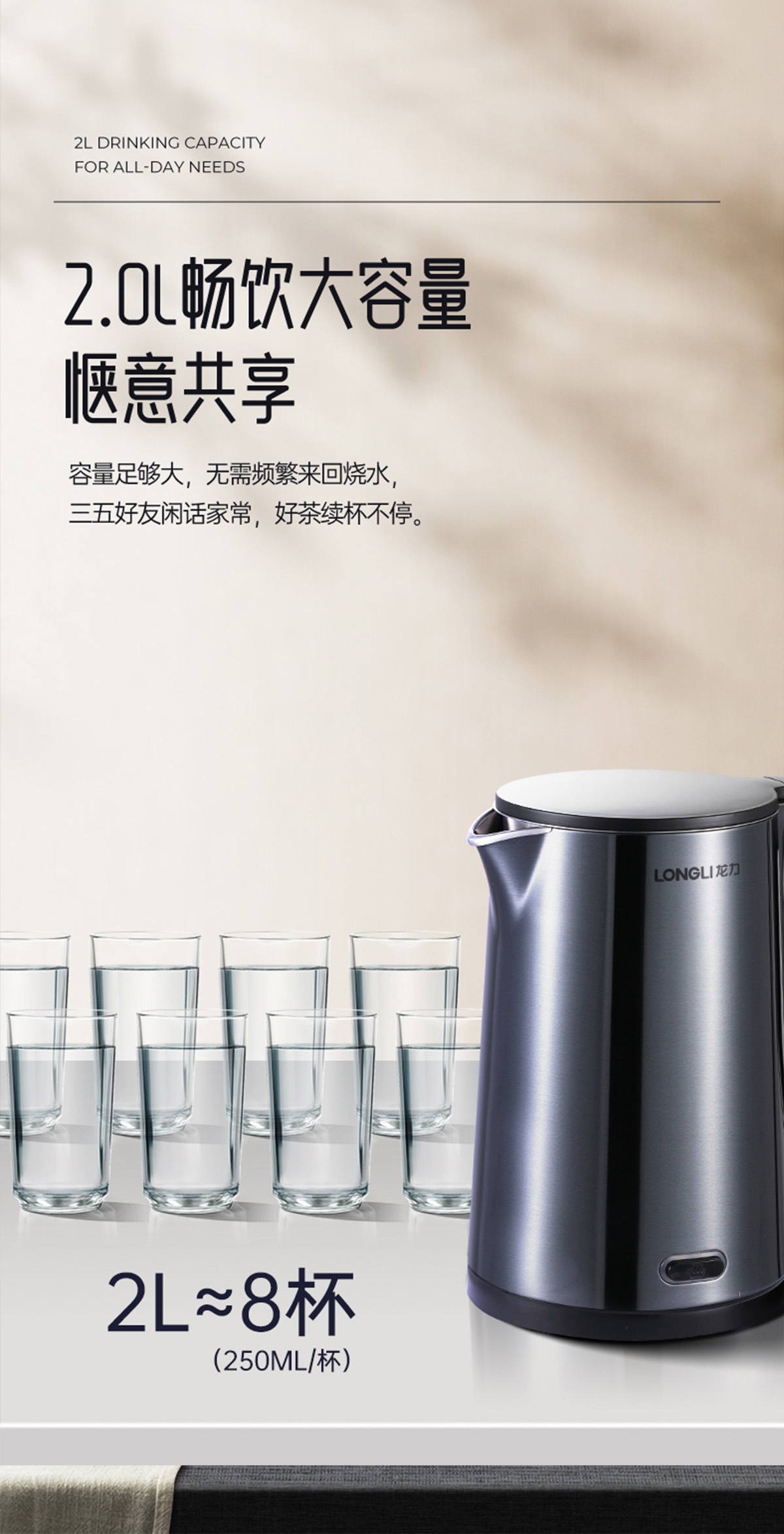 上文講到,想要泡出一碗好喝的八寶茶,必不可少的就是高溫?zé)崴P【帪榇蠹彝扑]一款大功率速熱電水壺吧!龍力8819B電水壺,1850W大功率,速熱煮水快人一步,讓你一首歌的時(shí)間就能邂逅一壺好茶。2.0L暢飲大容量,無需頻繁來回?zé)w三泡都無需來回?zé)貌枥m(xù)杯不停,愜意共享下午茶時(shí)光。龍力8819B電水壺還配有一鍵長效保溫功能,滿足多次悶泡!